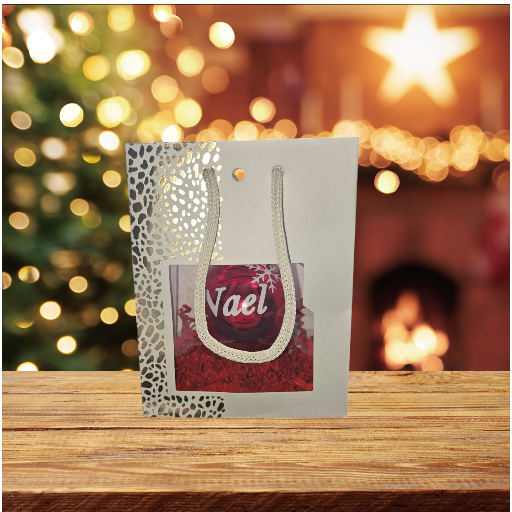Sac cadeau avec anses et frisures rouges pour boule de noël (non inclus)