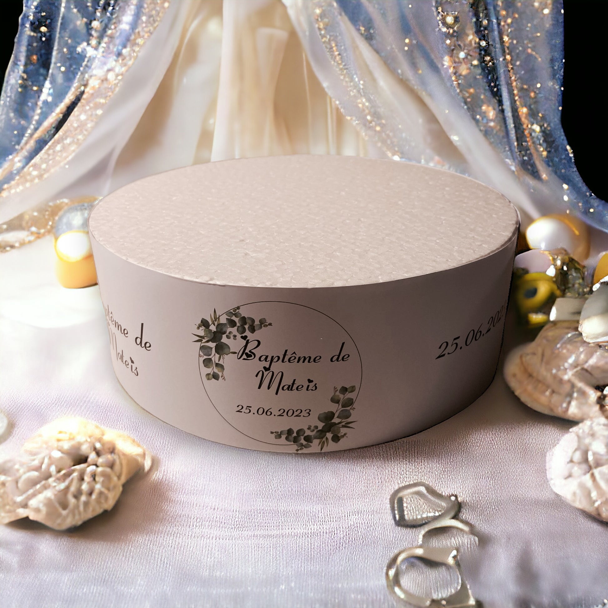 Support en polystyrène diamètre 20 cm, hauteur 7cm, pouvant contenir environ 15 sucettes.